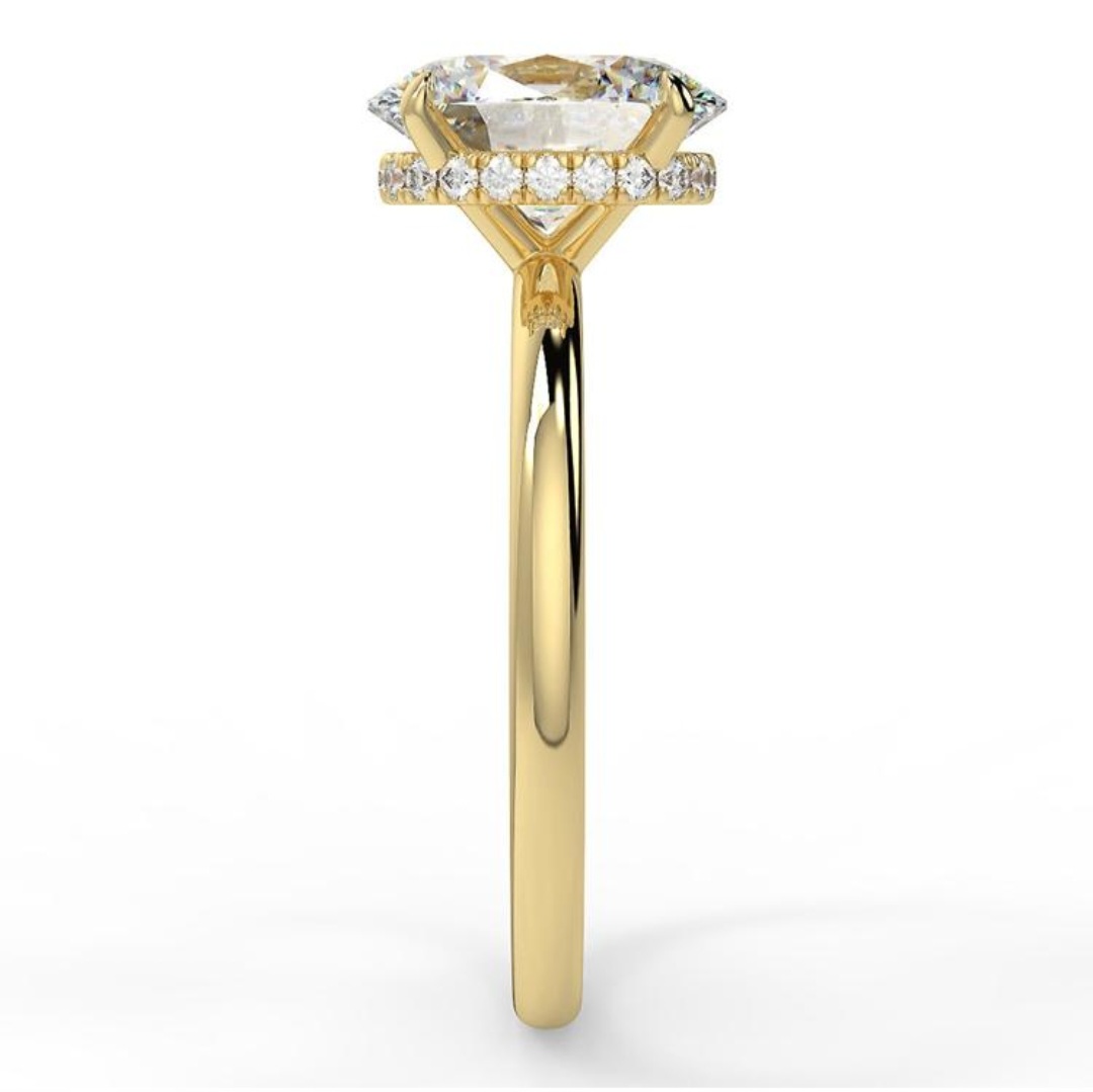 14K Gold, 2 carat oval moissanite centre stone ring with halo lift
