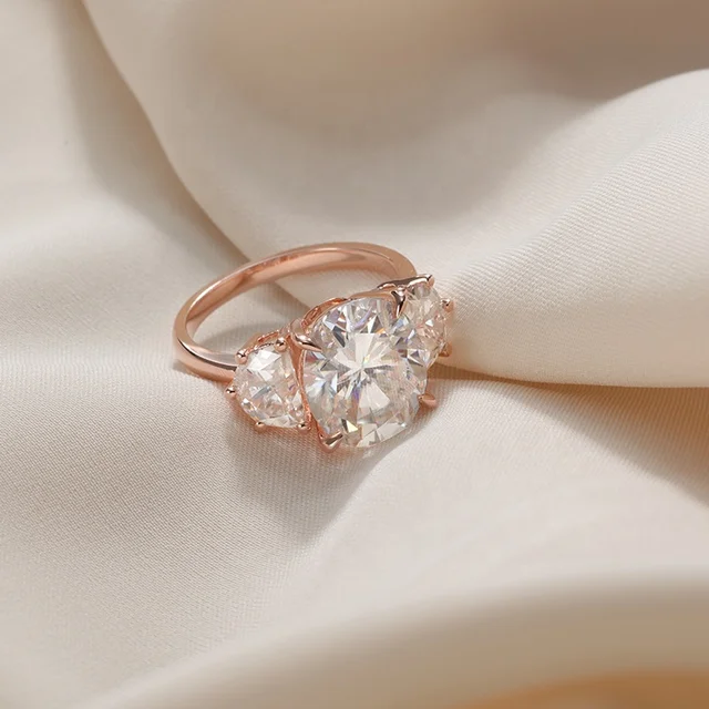 18K Gold Platinum three stone oval moissanite luxury rose gold ring