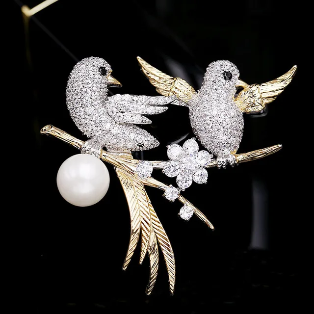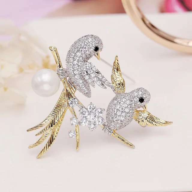 Copper silver bird beaded brooch