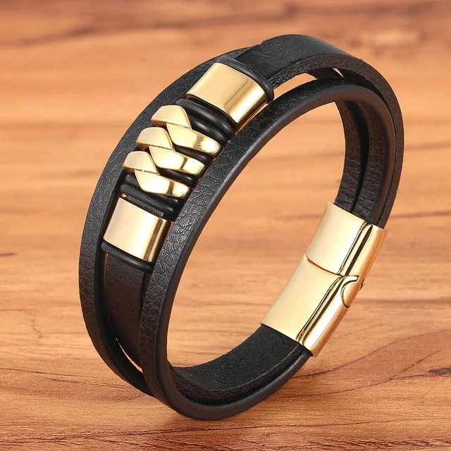 Genuine leather braided bracelet stainless Steel magnetic buckle cuff Bangle