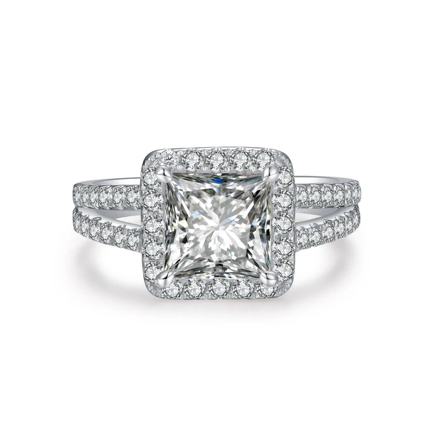 Platinum 2 carat D Colour Princess Cut with Halo Moissanite Ring