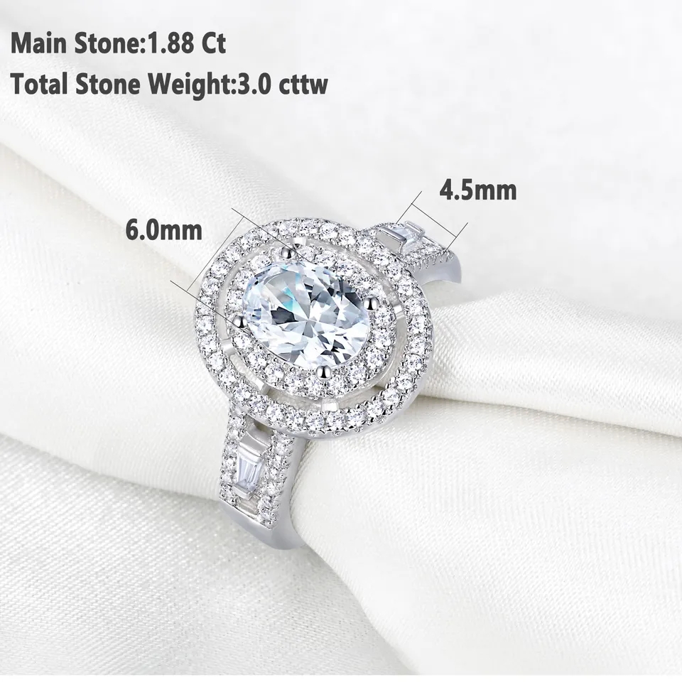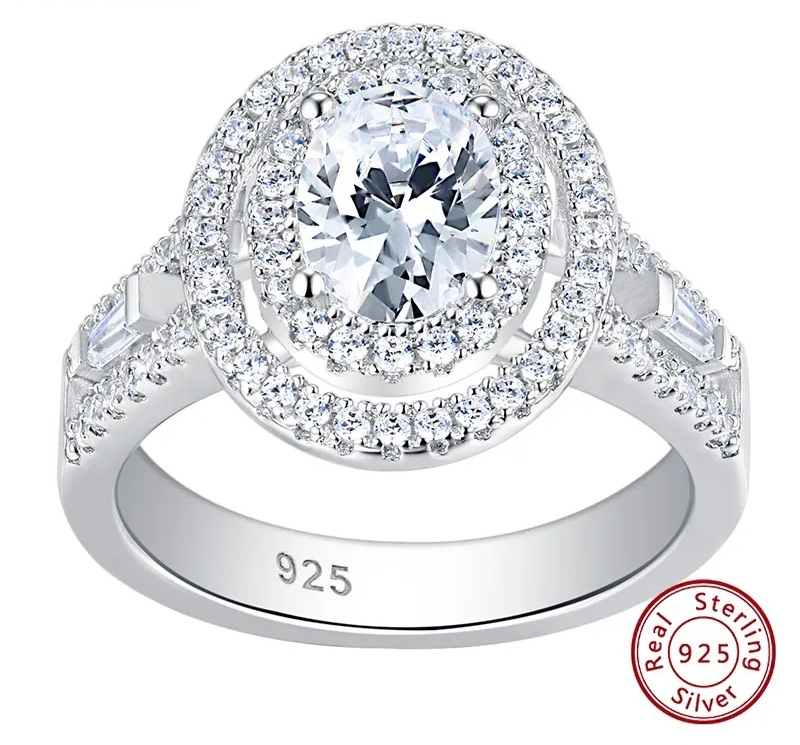 S925 Sterling Silver Halo Oval Shape 5A Cubic Zirconia ring