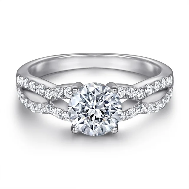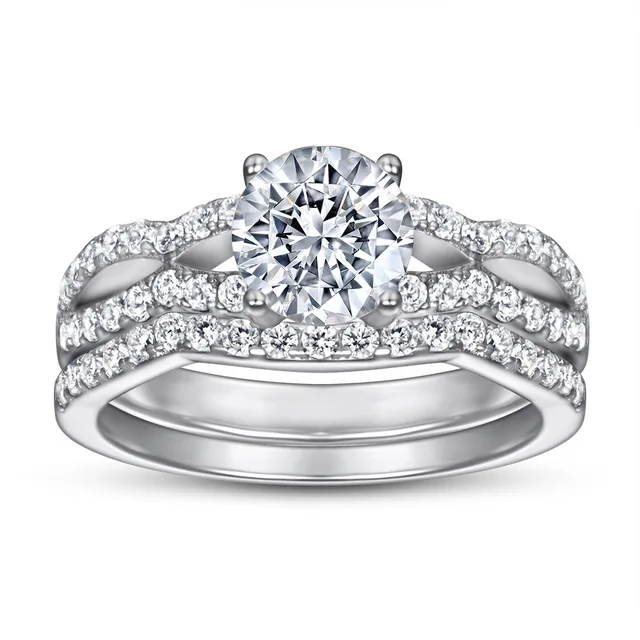 S925 Sterling Silver Round Brilliant Cut Cubic zirconia two piece claw setting ring