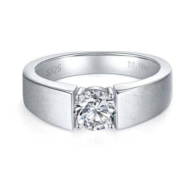 VVS Lab Grown 1 Carat Round Moissanite centre stone S925 Sterling Silver Ring